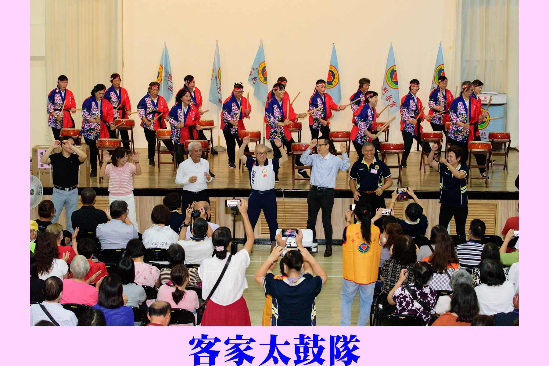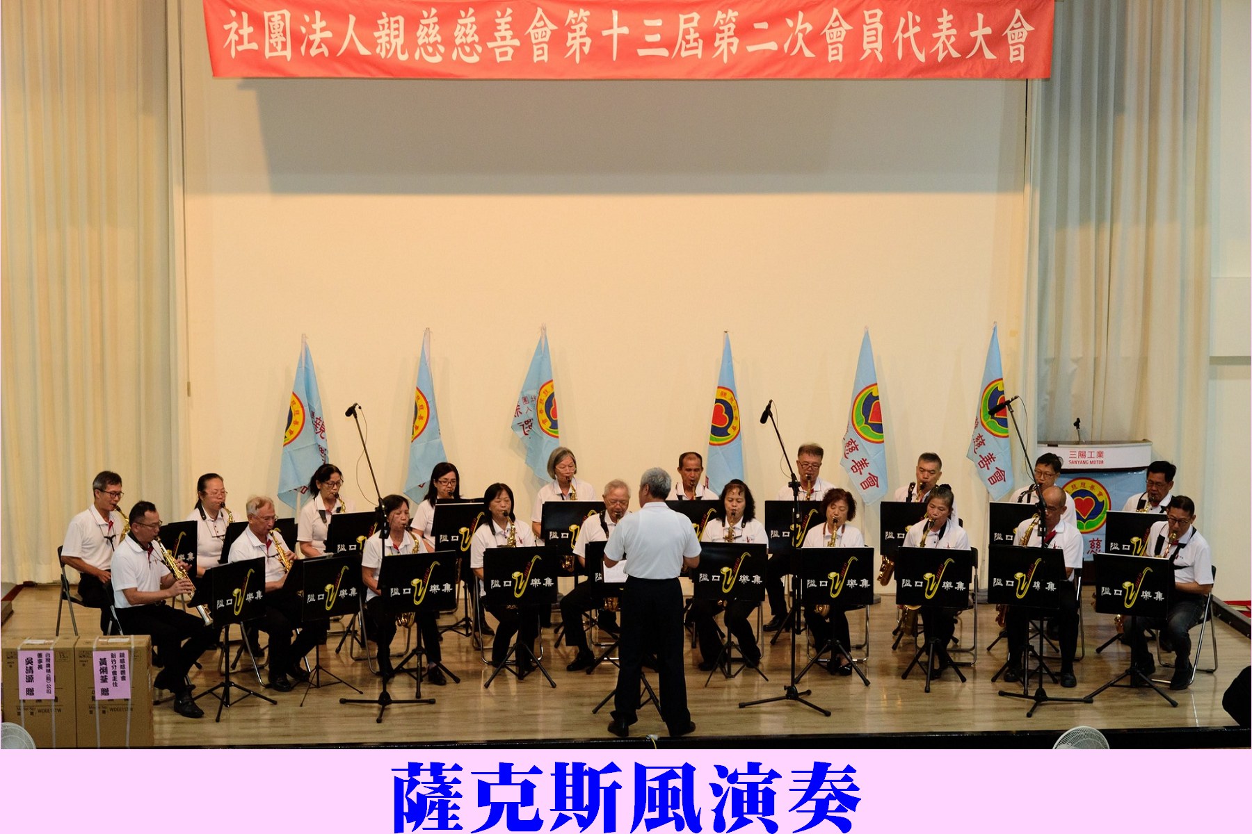 今年的表演節目也很精彩,由前桃園交響管樂團團長亦為樂團指揮陳榮昇老師,引領組成薩克斯風重奏樂團「隘口樂集」,安排4首表演曲目,在場會員均沉浸在悠揚的樂聲當中;由新竹縣新埔鎮文山社區發展協會-客家太鼓隊帶來活潑的太鼓表演,會員們隨著音樂與台上的表演者、身旁親友一同共舞,場面熱鬧非凡,帶來滿滿的歡樂;由163組會員吳盛財、程素琴伉儷的國標舞之捷舞表演,絕美的舞姿,讓會員們安可聲不斷。
